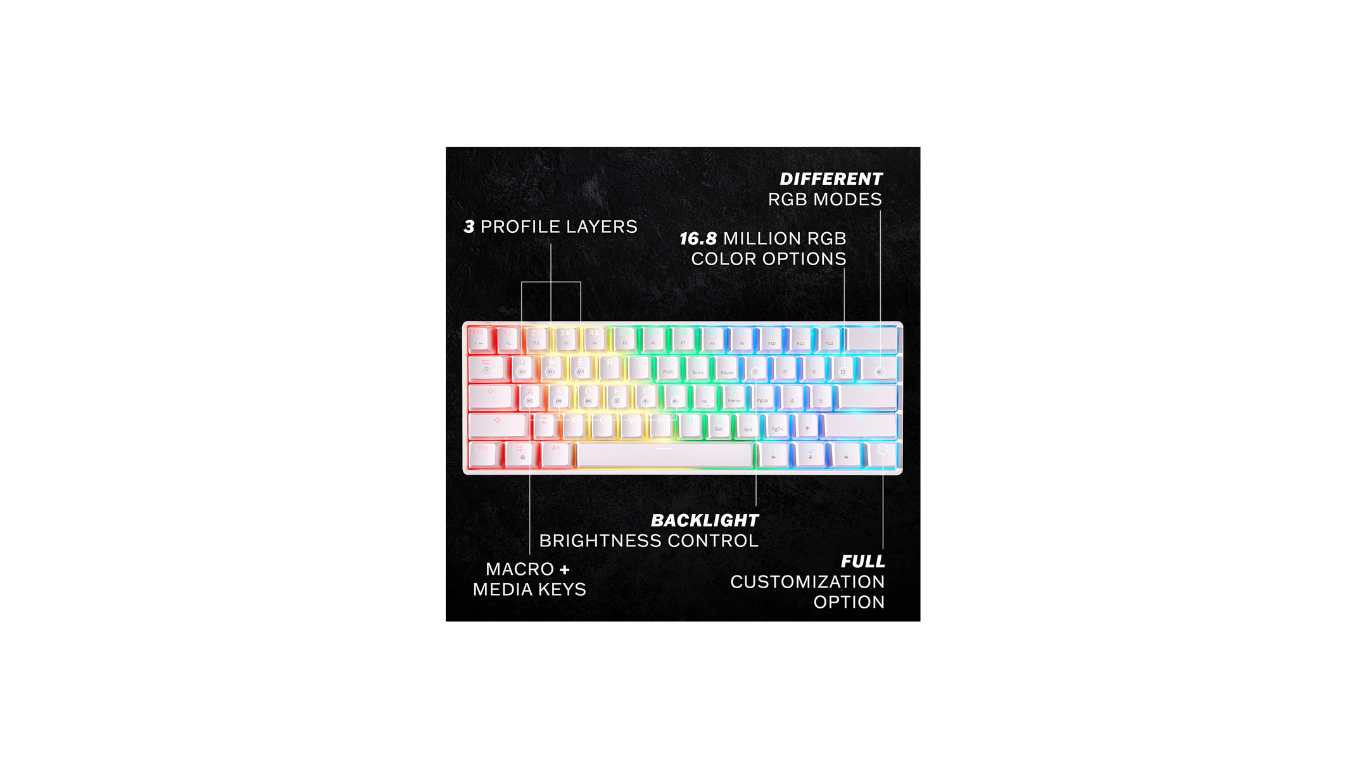 - Precision-molded PBT double-shot keycaps with a standard bottom row layout resist wear, fading, and shine, with 1.5mm thickness for rigid stability.